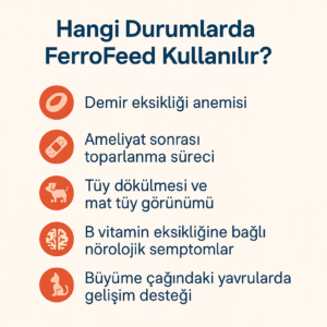 Veteriner hekim kontrolünde düzenli kullanım, demir eksikliği, iştahsızlık, halsizlik gibi durumların giderilmesinde maksimum etki sağlar.